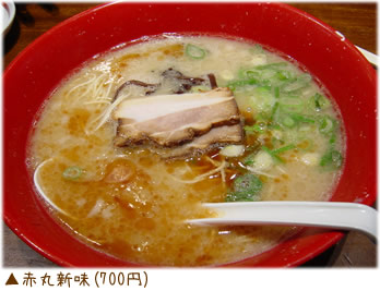 福岡でも関東でもあまりにも有名な博多一風堂。ちなみにここ大名が本店。らーめんはこってりの赤丸とややマイルドな白丸がある。お薦めはこってりの赤丸。ニンニクオイルの風味が食欲をそそり、はっきりうまいとわかるスープと細麺がマッチし、細麺が嫌いな人も思わずおいしいと思ってしまう。関東のラーメンに慣れているとこの麺の細さはどうもしっくりこないのが気になるところ。