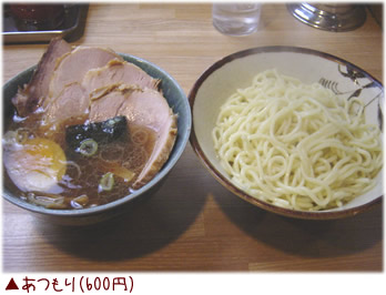 池袋で有名な大勝軒で修行したという店主のお店。とにかく行列がすごいが、日によっては開店前を狙えばなんとかなる。中盛りでも値段は同じ。つけ麺(あつもり)のスープはちょっと酸味の効いたスープ。麺は太めで食べ応えがある。チャーシューはかなりパサパサ系だが味付けはまあまあ。全体的には満足の行く内容だが、並んだ時間は30分ぐらいまでが目安。それ以上並ぶようだと満足感は減る可能性がある。