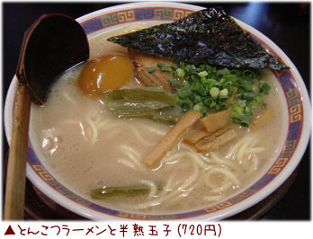 店内はちょっとセンスのない作りとメニュー達。ラーメンが出てくるまでは不安を感じるのだが、でてきたラーメンは意外にまとも。とんこつスープは家系の風格をちょっとだけ感じるタイプ。それに太めの麺が絡む。半熟玉子は驚くほどトロトロで黄身は濃厚。店員の格好と消費税を取るあたりはどことなく「七志」系?と感じさせるが、七志と比べれば全然おいしい。全体的にはまずまずという感じ。