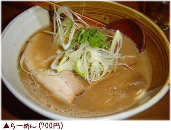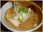 ラーメンプロデューサー渡辺氏の超人気行列店。スープは超濃厚とんこつ和風スープで、ねっとりまとわりつく豚骨スープの甘みと魚ダシがタップリ濃縮されている。チャーシューは薄いが味はおいしく、特徴である極太メンマはメンマ好きには嬉しい逸品。全体的にさすがラーメンプロデューサーと言われるだけの質の高さが感じられる。ただしこのラーメンが一番うまいかどうかは好みの問題。